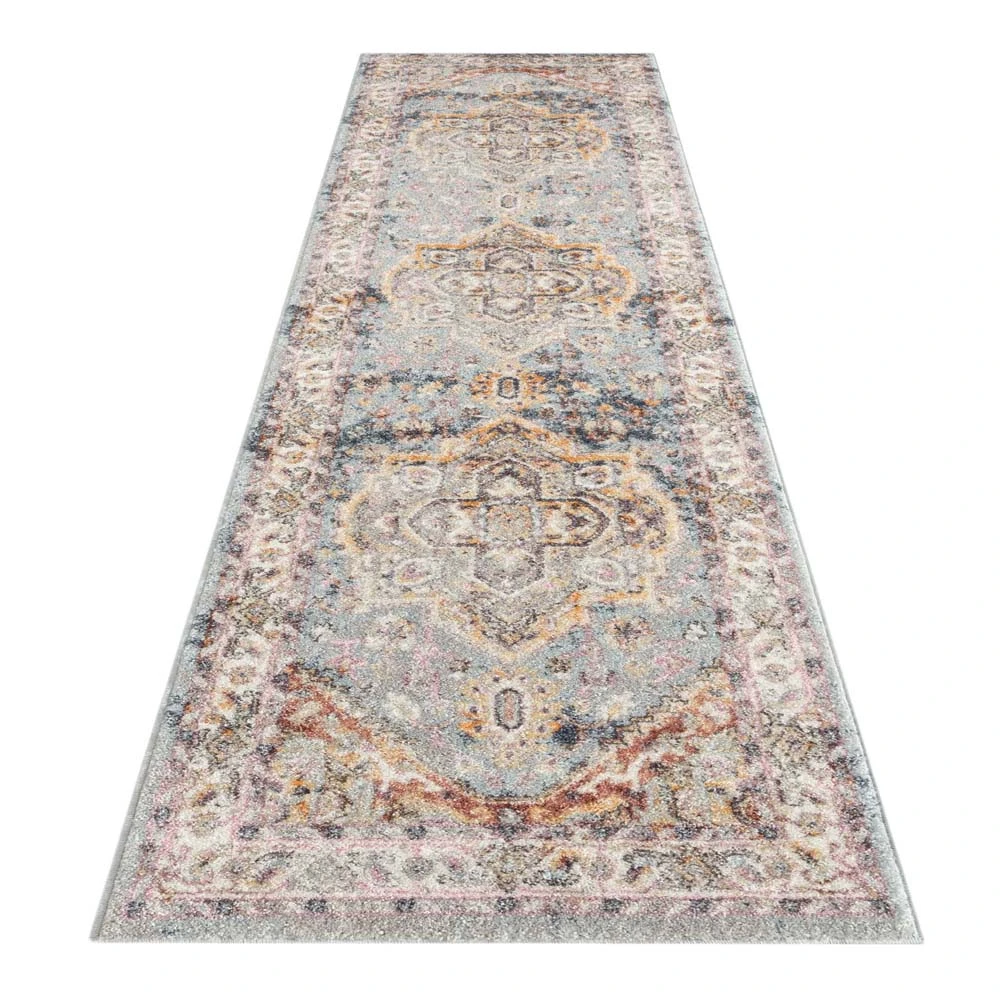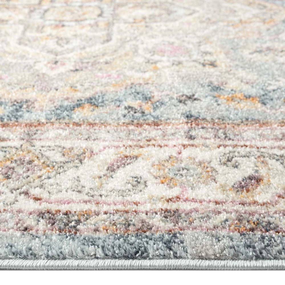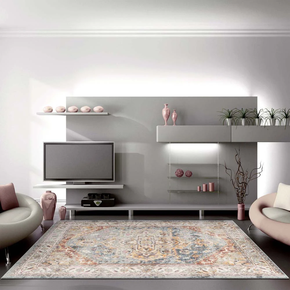 This pastel-colour, rustic-look collection has a soft polypropylene pile with attractive medallion designs crafted into textured, stain-hiding backgrounds. The soft, harmonious colour palette and the timeless traditional designs used in these rugs make them ideal for a large variety of floor spaces. This highly decorative and versatile collection is power loomed in Turkey and has shed-resistant, anti-static properties.